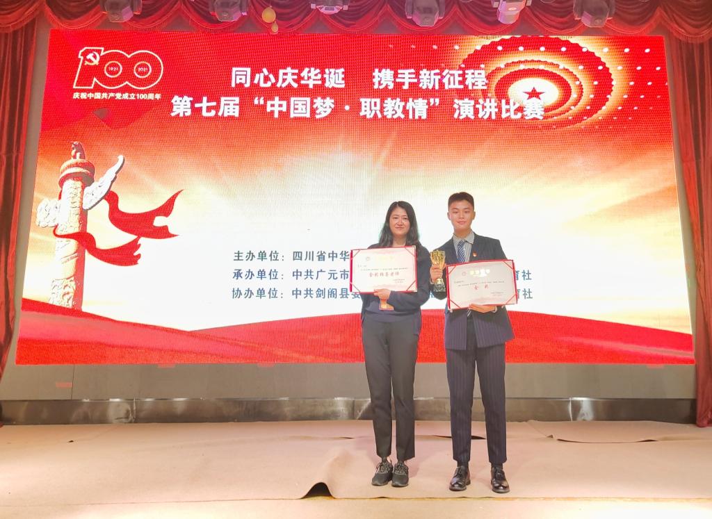 2021年5月14日,7790cnm必发集团学生代表欧阳俊棋参加了在广元剑阁由四川省中华职业教育社主办的“同心庆华诞 携手新征程”—四川省中华职业教育社第七届“中国梦·职教情”演讲比赛。大赛共吸引了全省高职和中职院校的44位选手同台竞技。