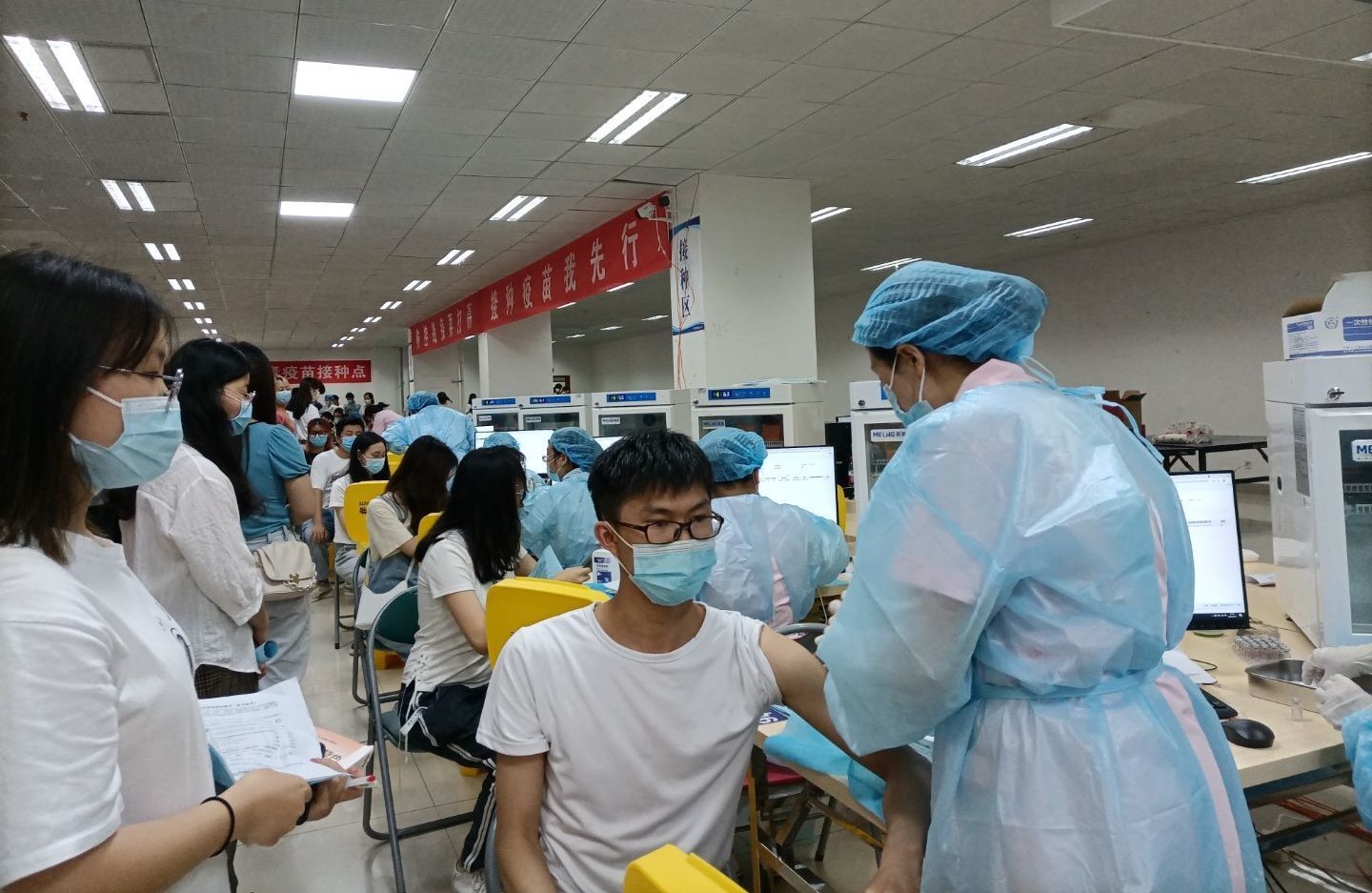 为深入贯彻党中央、国务院决策部署,落实国务院联防联控机制和教育部工作要求,按照学校的疫情防控安排,5月13日下午五点,金融学院积极响应“防控战疫”口号,组织学院各班级井然有序地开展疫苗接种工作。