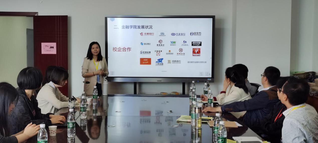 我院李馨老师进行了互联网金融专业汇报,主要汇报了互联网金融专业整体情况和课程发展情况,老师们也在李馨老师的讲解后为新教材提出意见和建议。紧接着,柯繁老师分析了四川长江职业学院商贸与融媒体学院的现状,由浅入深对金融职业教育的现状和金融培育人才的各方面进行了分享。