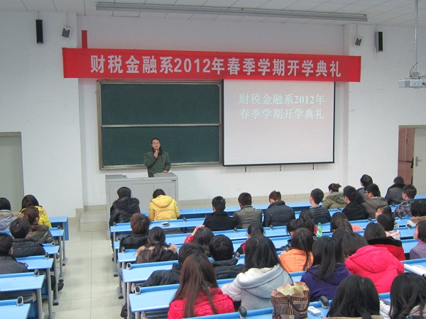 新学期,新起点。我系于2012年2月21日下午2:20-3:30和3:40-4:10在B113教室分别召开了财税金融系2012年春季学期2010级和2011级学生的开学典礼,参加此次开学典礼的有财税金融系主任钟用、党支部书记祝刚、副主任李如万以及全系师生。