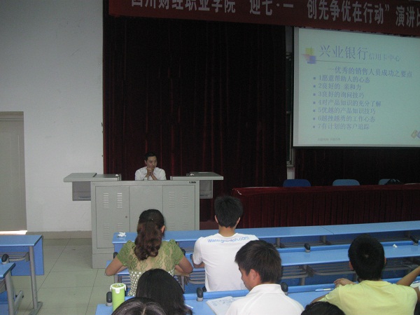 随着09级金融班同学中期实习的到来,财税金融系特邀兴业银行成都分行的老师举行为期两天的实习培训。担任此次培训的指导老师是来自兴业银行的王老师、秦老师、张老师以及刘老师。