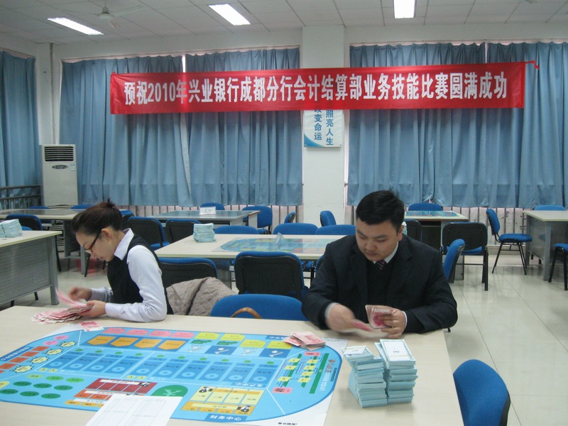 上午9点40分左右,技能比赛分别在B310和B313同步举行。本次技能比赛有传票算、汉字录入、点钞、假币识别等项目,选手们围绕这些项目展开了激烈的竞争。在点钞比赛中,来自会计结算部的技能能手以五分钟17把全对的成绩取得绝对胜利;在汉字录入和传票算比赛中,选手们以平均每分钟80余字和4道题目的速度,展示出他们的高超技能;在假币识别这一项目中,一位选手以40秒过105张钞票并找出全部假币的成绩傲视群雄。兴业银行的员工们在此次比赛中展示出了一个银行人应有的素质,给我院学生是上了一堂生动的实训课程。