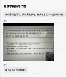 为全面贯彻落实党的二十大精神,深入落实习近平总书记关于教育的重要论述和立德树人根本任务,不断提升我院辅导员的思想政治素养、业务能力和育人水平,11月26日-11月28日,金融学院组织全体专兼职辅导员参加“全国高校辅导员素质能力大赛全环节剖析暨辅导员核心素养提升”线上研修班。