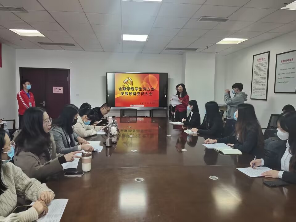 2022年12月9日,金融学院学生党支部在明德楼712召开支部大会,参加会议的有党总支副书记李虹、组织员陈世千、学生党员联系老师以及学生支部全体师生党员,会议主题为:讨论郑鑫、刘艳、张雯谦、刘议四名同学发展为预备党员的问题。