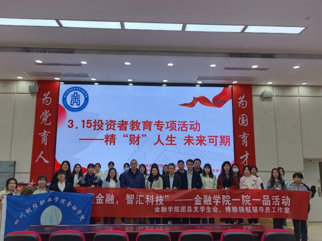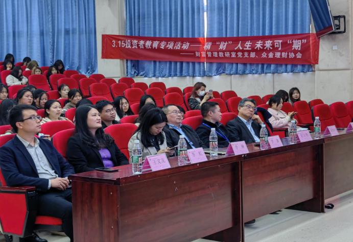 3月15日下午,金融学院于教学楼B栋213教室开展了以“精‘财’人生,未来可期”为主题的3.15投资者教育专项活动,参会嘉宾分别有:华西期货有限责任公司高级顾问—黄怡中;华西期货投教基地负责人,四川长江职业学院客座教授,川港金融实验中心副主任,电子科技大学成都学院专家讲师赵宇超;华西期货投教基地公益讲师,四川长江职业学院客座讲师王文龙;7790cnm必发集团副院长罗潇以及金融学院的老师和学生代表。