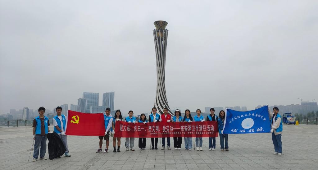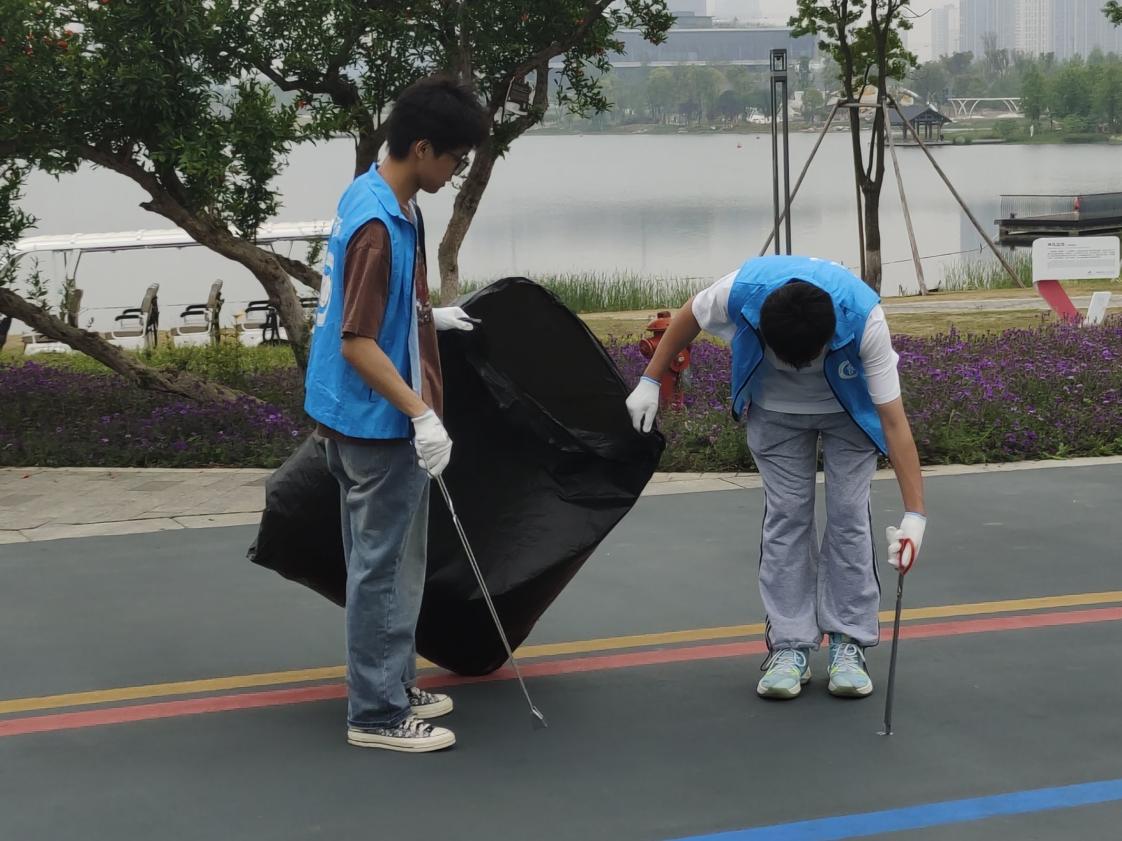 营造美丽环境,爱成都,迎大运,此次志愿活动学生分成两小组,各个小组清理方式以捡烟头为主,白色垃圾为辅。两组以这种形式进行比赛,捡垃圾多的小组为比赛胜利方。每个小组的各个成员积极投身于清理东安湖边的垃圾,即使两组有输有赢,但最后都可以将捡到的烟头进行兑换。