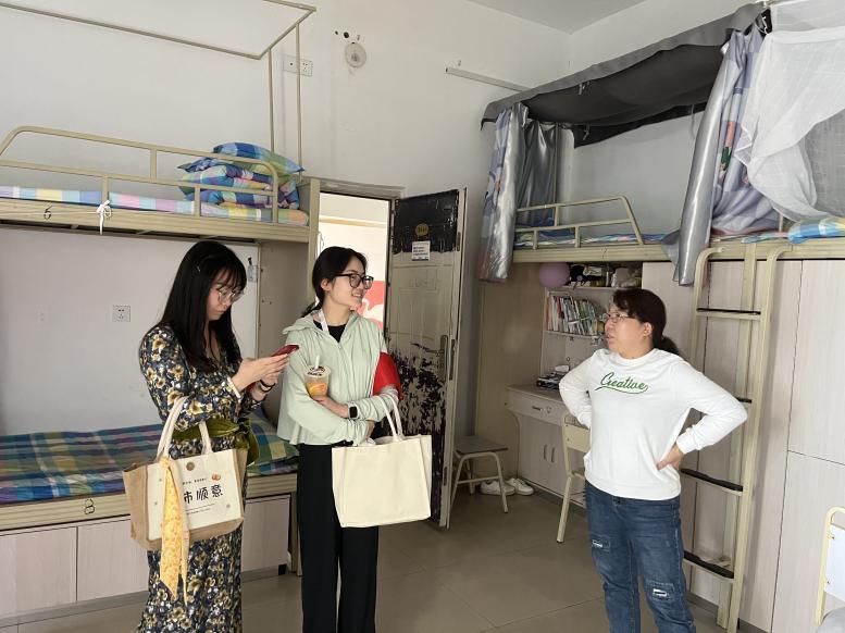 下午,老师们又集体来到学生公寓,检查学生宿舍卫生情况并与生活老师开展工作交流,了解学生在宿舍的生活状态,了解是否存在使用违规电器、是否存在学生晚归、夜不归宿等情况。