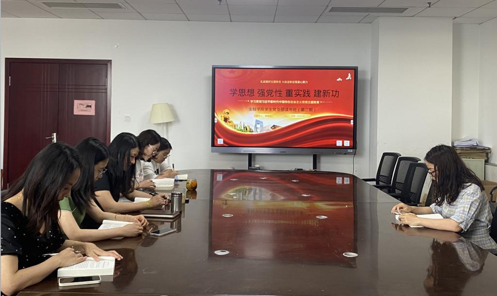为牢牢把握“学思想、强党性、重实践、建新功”的主题教育的总要求,全面学习领会习近平新时代中国特色社会主义思想,6月7日下午,金融学院学生党支部在明德楼712会议室召开“学习贯彻习近平新时代中国特色社会主义思想主题教育”读书班(第二期)。