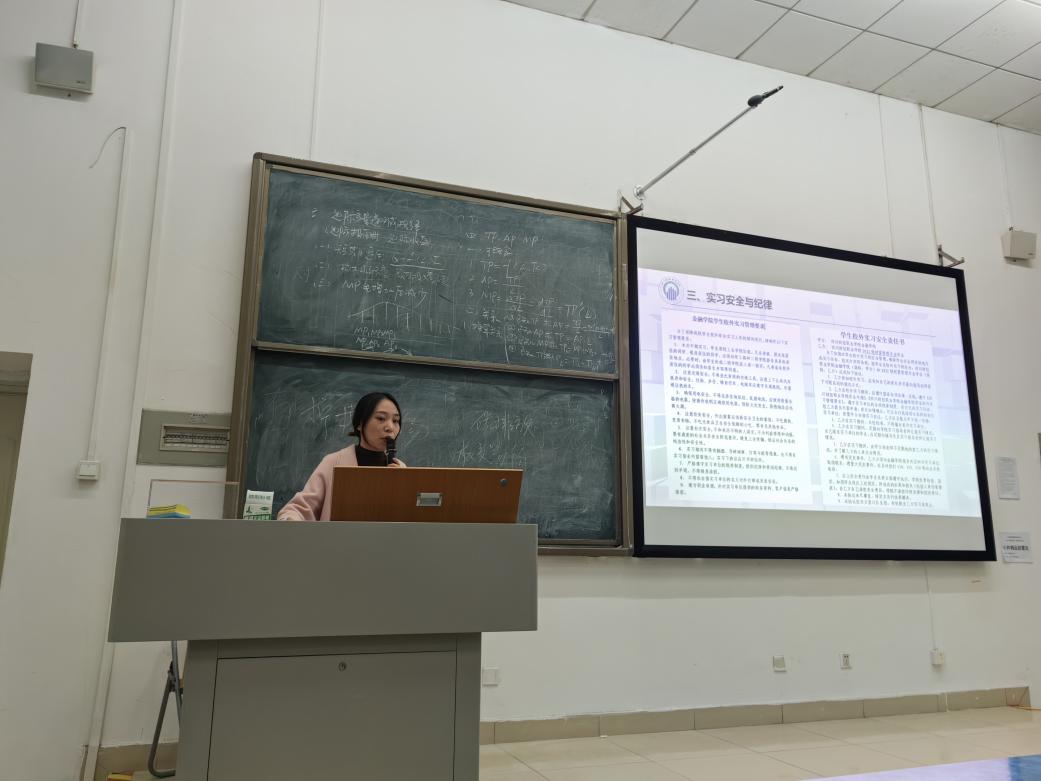 随后,岳媛媛对中期实习的总体安排和具体要求进行了详细讲解,从实习岗位安排、实习时间安排、实习期间的纪律要求、实习的考核评价等方面进行了说明。同时,她指出同学们是链接学校和企业的桥梁,是学校的代言人,希望同学们要端正实习态度,强化规则意识,虚心学习主动学习,给实习单位留下良好的口碑。