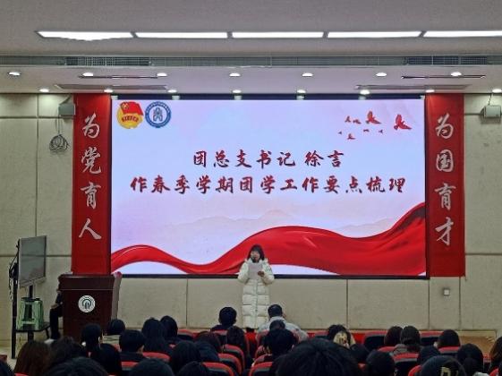 首先,金融学院团总支书记徐言作了春季学期团学工作的要点梳理,主要从以下几个方面展开说明:一、要强化思想政治引领,深化青年大学习行动,推动党的创新理论在青年中入脑入心入行。开展评选表彰工作,培树典型,激励青年学生向榜样看齐、向先进学习。此外,我们还要充分利用学院官网,完善学院的新媒体矩阵,打造网络思想引领品牌。二、服务学生成长成才,促进校园文化提质增效。要积极开展社会实践和志愿服务活动,组织暑期三下乡实践活动,深入开展“我为同学办实事”项目,为学生提供更多成长机会。三、深化改革,加强学生干部队伍建设,认真落实全面从严治团实施纲要,举办学生干部培训活动,全面提升学生干部的综合能力。