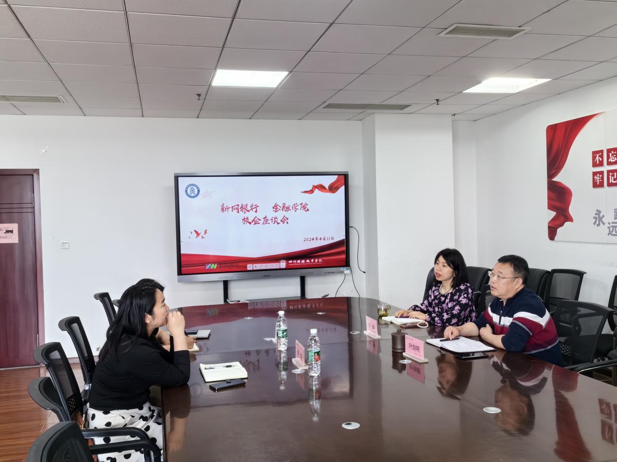 2024年4月11日,金融学院与新网银行进行了校企洽谈,新网银行人力资源部李伟总经理、招聘主管何叶、金融学院院长叶剑明、办公室主任许静、部分学生代表参加了此次座谈。