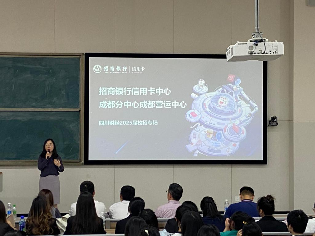 接着,招商银行信用卡成都营运中心风险管理室经理戴文利上台致辞并进行订单班宣讲。戴经理指出,招商银行和金融学院具有良好的合作基础,校企合作时间长、了解深入、相互认可度高,希望未来能够继续深化合作。随后,戴经理介绍了招商银行信用卡中心发展历程、服务理念、企业文化、过往荣誉,并就订单班培养模式、岗位设置、岗位职责、薪酬福利、培训体系、招聘流程等方面进行了全面讲解。并与参会学生现场互动沟通,细致解答了学生们关心的问题。