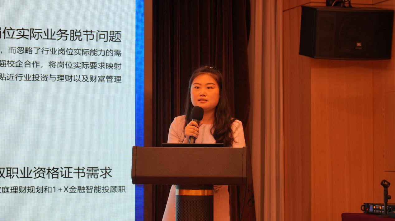 陕西财经职业学院金融学院院长陈冬主持了金融类专业人才培养方案专题研讨环节。与会人员围绕高职金融专业人才培养目标设定(西部地区)和高水平专业群视角下高职金融专业人才培养方案中专业核心课程设置两个问题进行讨论,并分别分享了各组的观点。大家认为,高职金融专业人才培养要构建“金融+”的理念,培养目标不能仅仅定位为金融机构培养人才,更应该定位于培养具有金融职业素养,能在企业用金融思维和金融知识为企业创造价值的人才。为此,人才培养中要拓宽金融知识面,强化金融职业素养提升和数字化技能训练。