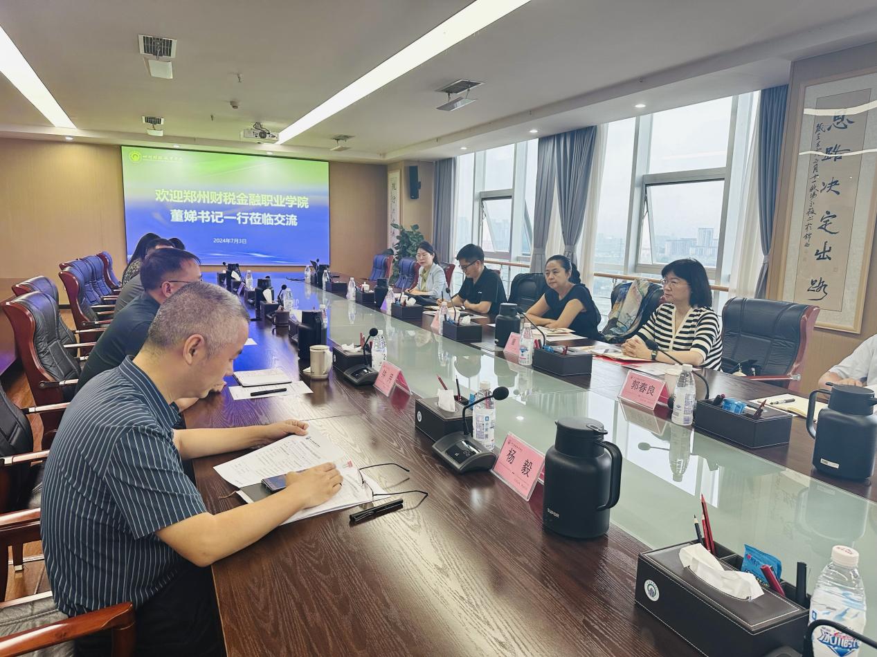 7月3日,郑州财税金融职业学院党委副书记董娣率金融学院、教务处一行到我校考察交流。双方在我校明德楼913会议室召开座谈交流会。学校党委委员、副院长钟用,金融学院、教务处、财税学院相关人员参加座谈会。会议由金融学院党总支书记、院长叶剑明主持。