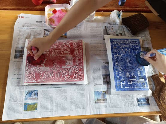 在技艺传承人的指导下,团队成员还开展了苏维埃布币的石板拓印体验。通过“上纸—敲打—上墨—起纸—晾晒”等系列流程,团队成员成功制作出苏维埃布币拓印件两枚,这既加深了团队成员对川陕革命根据地红色财经文化的感受,更体会了石板拓印这一传统文化的魅力。