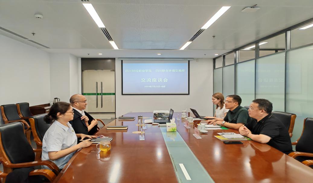 2024年7月25日,学校党委委员、副院长钟用带领金融学院党总支书记、院长叶剑明、王秋蕴博士,赴四川联合环境交易所(以下简称环交所)走访交流。此次访问受到了环交所的热烈欢迎,环交所能力建设部总经理周广友和祁美涛、张甜甜参加座谈交流。