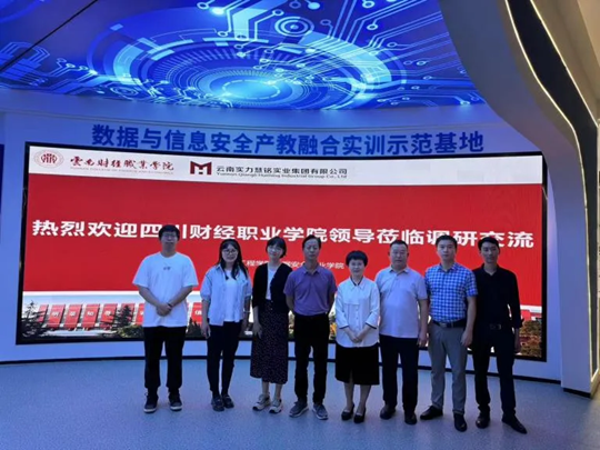 9月4日,李院长带领金融学院一行首先拜访了云南财经职业学院。双方围绕职业教育高质量发展的路径、专业建设、教学管理和产教融合等方面进行了深入交流。李院长一行先后参观了云南财经职业学院的数字新商科虚拟仿真实训基地、数据与信息安全产教融合实训示范基地等多个实训基地,对其实训基地建设和虚拟仿真技术的应用给予了高度评价。座谈会上,两校领导分别介绍了各自学校的发展历程、办学特色和成绩,并就职业教育高质量发展的具体问题进行了深入探讨,达成了深化教育教学改革、优化专业设置、加强教学质量监控等共识,为未来的合作奠定了坚实基础。