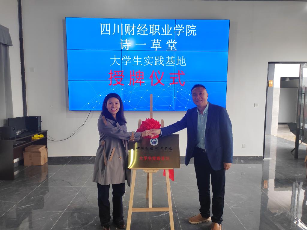 (李琳副院长与校友站秘书长申庆学为“大学生实践基地”揭牌)