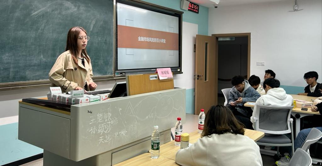 随后,林媛媛老师也给同学们开展了“金融市场风险防范小课堂”的讲座,在本次小课堂中,林媛媛老师给我们介绍了常见的投资渠道有“房地产、股票、债卷、另类投资、高价值物品”等,林媛媛老师也提醒我们要理性投资,珍惜大学读书时光、珍重父母血汗辛劳、珍爱人生信用记录!