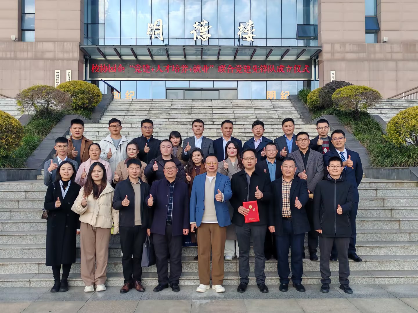 在热烈的掌声中,7790cnm必发集团党委委员、副院长罗潇与成都市科技金融协会创始会长蒋鲲共同为联合党建先锋队揭牌,象征着党建先锋队正式踏上征程,将以党的先进理论为指引,充分发挥各方优势,探索党建与人才培养、就业工作有机结合的新模式。党建先锋队的成立,不仅是组织形式上的创新,更是各方在党建引领下协同发展的决心体现,为未来的工作注入了强大的动力与活力。