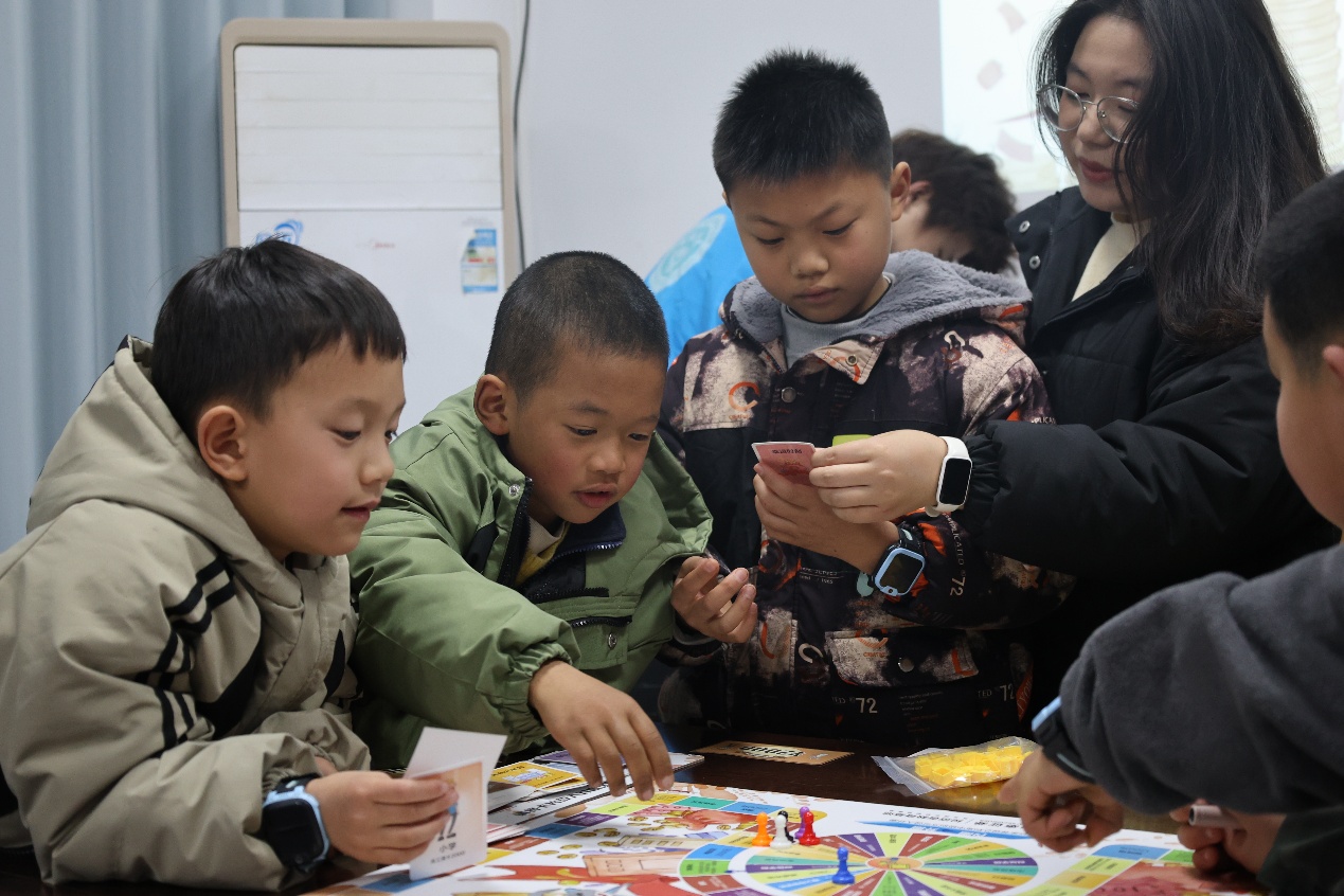 随后,孩子们化身为“小小理财家”,分组体验了同名财商主题桌游。游戏模拟真实经济场景,参与者需通过规划收入、储蓄、投资及风险应对,完成财富积累目标。桌游地图、钱币道具、事件卡片等元素迅速点燃了孩子们的热情。在“领薪日”领取工资、购买股票、完成梦想任务等环节中,孩子们不仅体验了理财的乐趣,还学习了“三商”(智商、情商、财商)的协同作用,初步掌握了财富管理的基本技能。