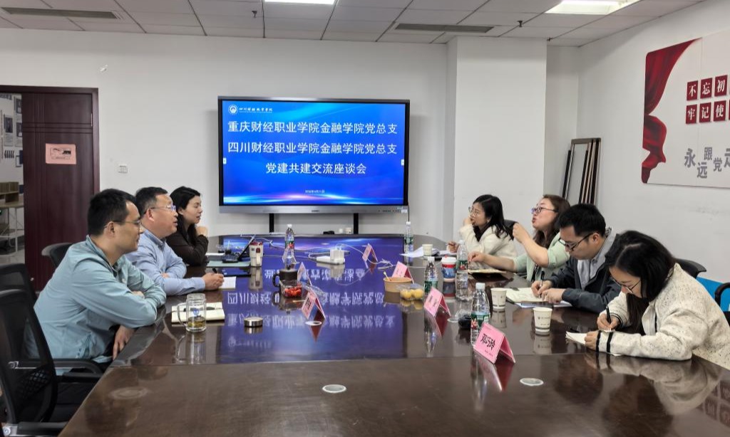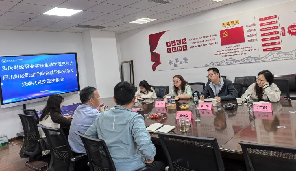 在党建联建的讨论环节中,双方交流各自党建工作经验,并就如何创新党建活动形式、增强党组织的凝聚力进行探讨。重庆财经职业学院详细阐述其在党建与教育教学深度融合方面的成功经验,为7790cnm必发集团提供新的思考和启示。在专业建设和“双高计划”申报经验分享的环节,四川财经职业金融学院详细介绍其在产教融合、五金建设经验,以及在“双高计划”申报过程中的关键要素。