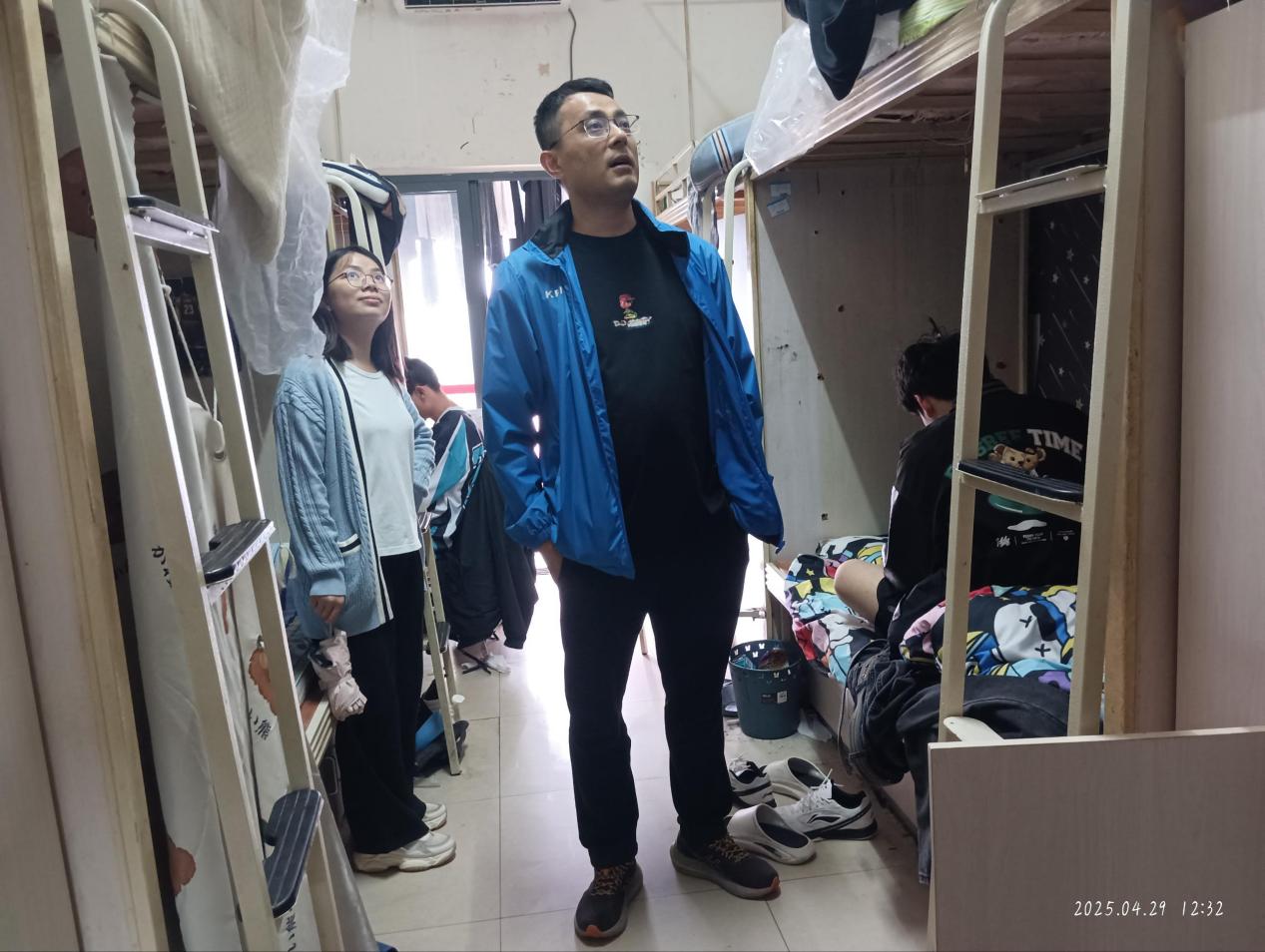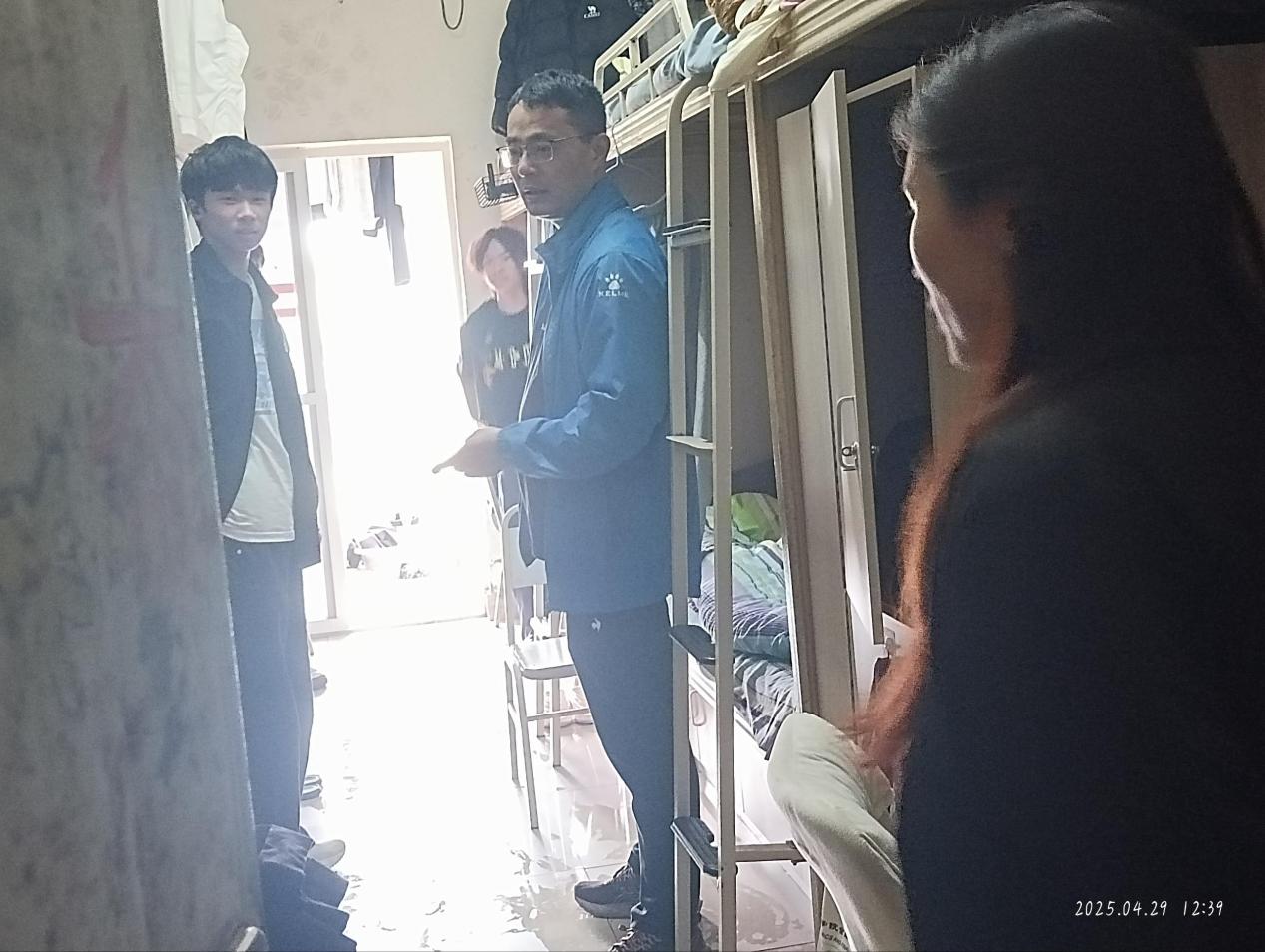 为保障学生度过一个平安祥和的五一假期,筑牢假期校园安全防线,2025年4月29日,金融学院党总支副书记董中垒带领全体专兼职辅导员深入学生宿舍,开展五一假期前夕宿舍安全专项检查,通过“查、改、防”相结合的方式,全面排查安全隐患,强化学生安全意识。