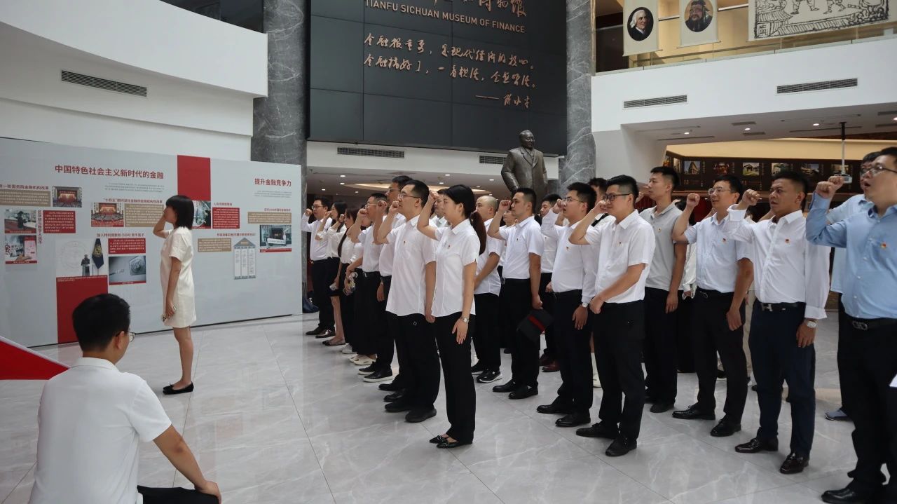 本次主题党建活动分为三个阶段,全体党员重温入党誓词,参观天府四川金融博物馆,科技金融高质量发展闭门研讨会。学校、协会、银行、企业分别做了交流发言。