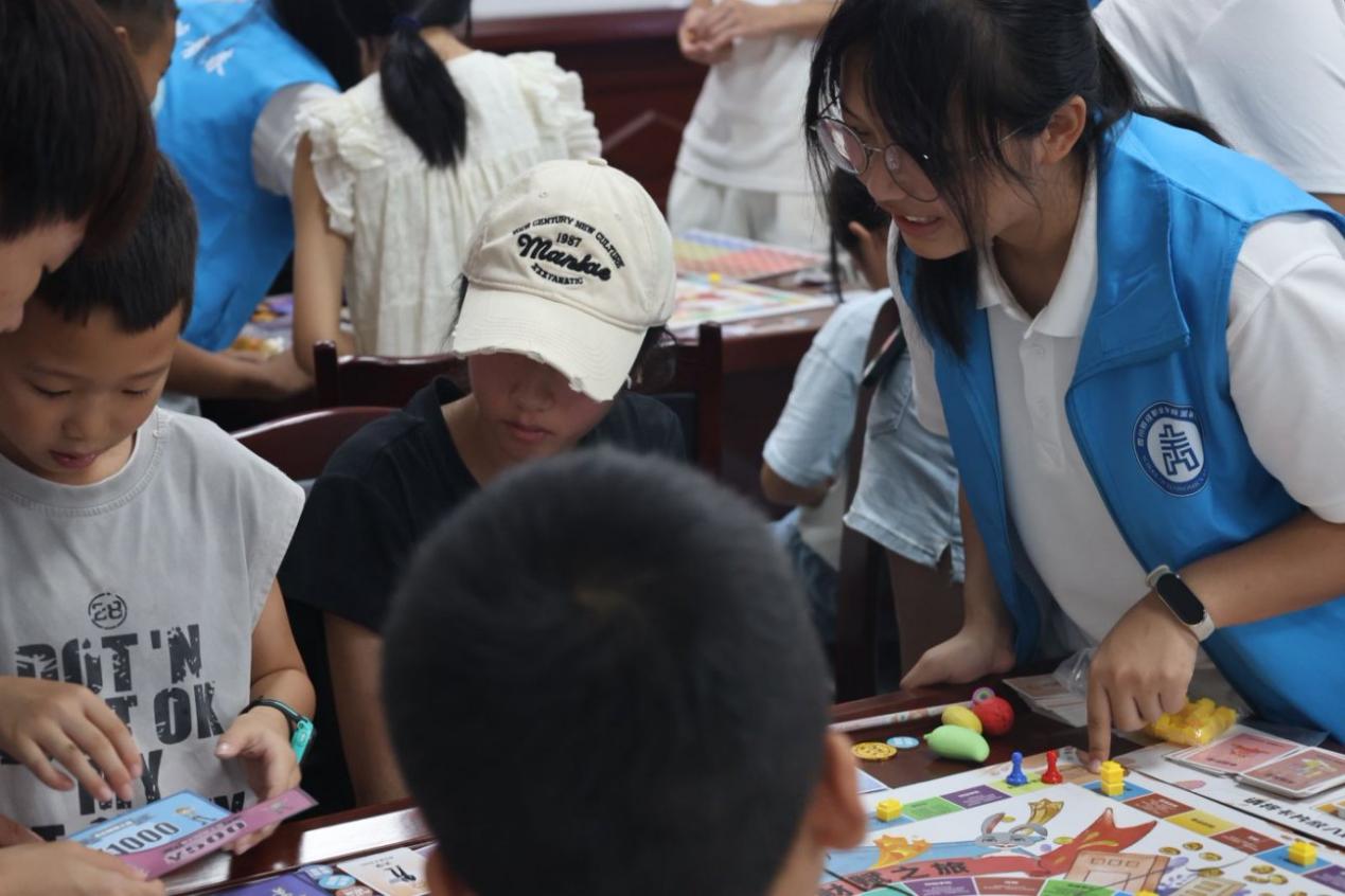 游戏推进时,实践团成员化身为“财富管家”。讲解时,小朋友们目光紧紧追着“财富管家,遇到不懂的地方,立刻举起小手追,通过这样的方式初步理解到了股票,保险等金融术语。