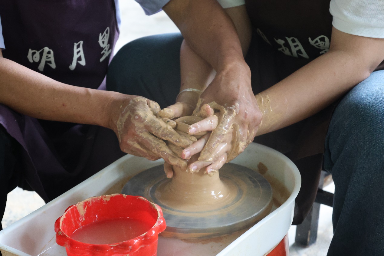 上午,实践团队前往了“明玥里”陶瓷工作室进行了制陶体验。陶艺师傅现场演示拉坯、塑形等传统制作技法,详细讲解制陶工艺流程。实践团成员在陶艺师傅的指导下动手操作,通过揉泥、定形、塑形等环节,完成个人陶艺作品制作。过程中,大家不仅掌握了陶艺制作技巧,更深刻体会到非遗技艺的魅力与传承价值。