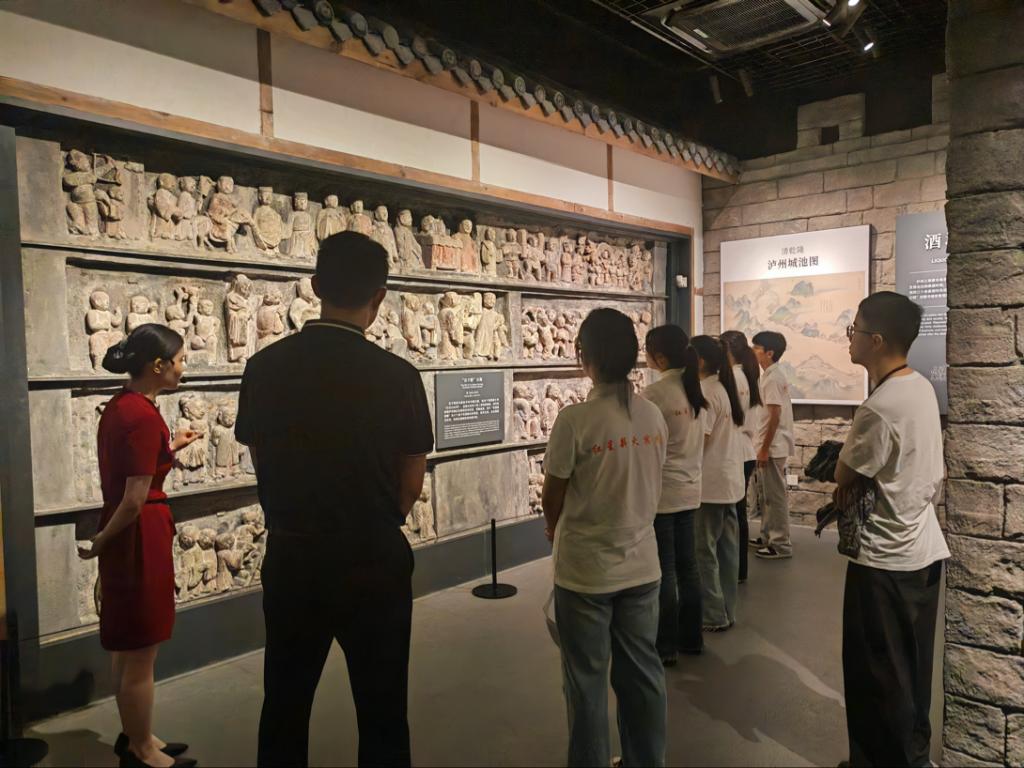 实践团首站驻足泸州博物馆。万余件馆藏文物中,1416件珍贵文物如时光棱镜,折射出泸州在抗战时期的特殊印记,在历史文物陈列馆,带着硝烟气息的实物史料,娓娓诉说着这座大后方城市的热血担当。