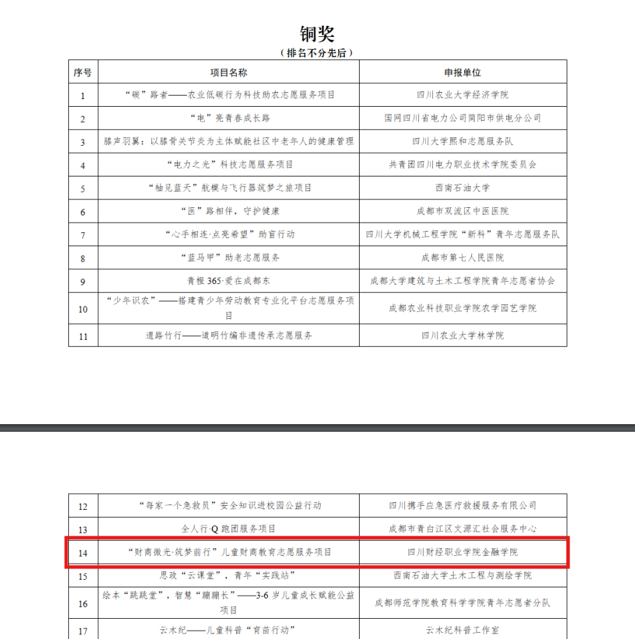 2025成都市青年志愿服务项目大赛终评于6月28至29日在成都青年之家1号旗舰店举办,“财商微光·筑梦前行”儿童财商教育志愿服务项目凭借鲜明特色与扎实成效,成功荣获铜奖。