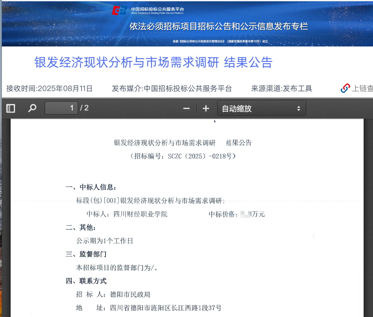 感恩支持,砥砺前行。此次项目中标离不开校领导、院领导的高度重视和大力支持。学院始终鼓励科研团队立足专业、服务社会,为国家和地方发展贡献智慧。研究中心团队表示,将不负众望,充分发挥专业优势和研究积累,高标准、高质量完成调研任务,力争形成具有实践指导意义的优质成果,为德阳市银发经济发展提供坚实支撑。