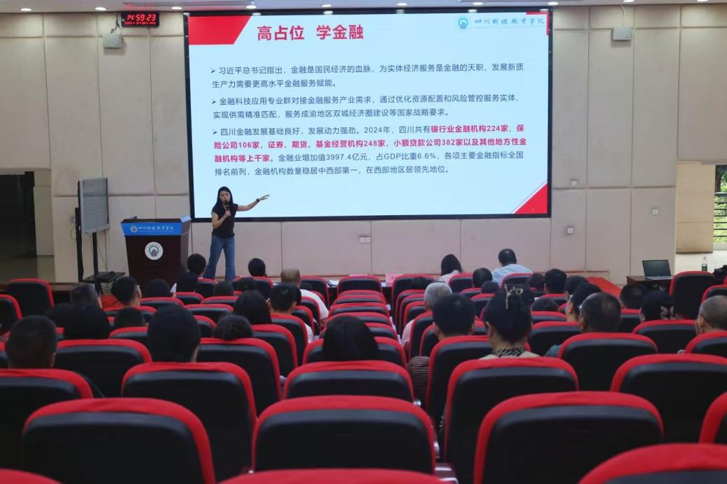 金融学院副院长李琳就专业建设与课程体系作了系统介绍。学院设有金融服务与管理、财富管理和金融科技应用三个专业。专业课程设置紧密,结合行业数字化转型需求,注重校企合作与实战能力培养。近年来,学生在多项省级、国家级技能大赛中屡获佳绩。