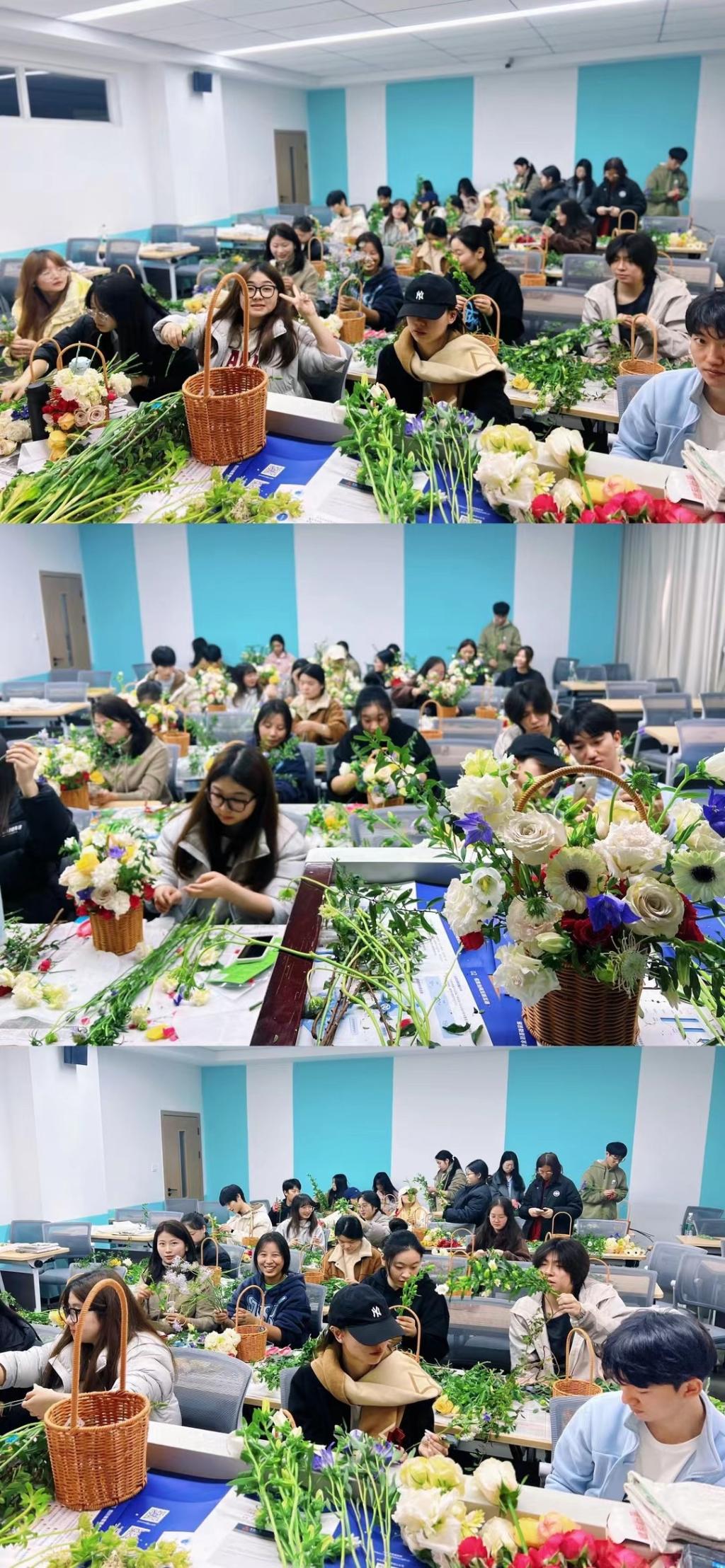 “以前总觉得插花是离生活很远的艺术,今天亲手体验后才发现,每一枝花的摆放都藏着审美与心意。” 金融管理专业1班的李同学捧着自己的插花作品感慨道,“这次课堂不仅让我学会了插花技巧,更让我慢下来感受生活中的美好,原来美就藏在这些细碎的美好里,这就是美育最动人的地方。”