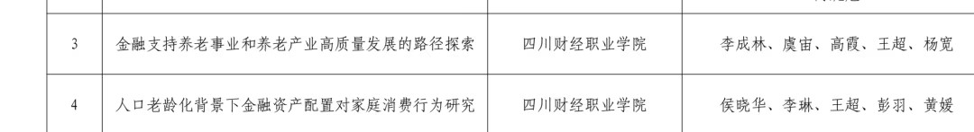 近日,四川省金融学会公布2025年度重点研究课题评审结果。我院银发经济与养老金融研究中心两项课题《金融支持养老事业和养老产业高质量发展的路径探索》《人口老龄化背景下金融资产配置对家庭消费行为研究》均获评理论研究类三等奖,这一成绩不仅是课题组成员的学术成果体现,更是我院研究中心聚焦国家战略、深耕专业领域、服务社会发展的有力见证。