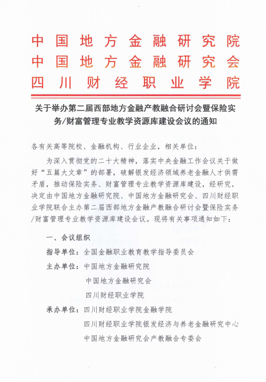 关于举办第二届西部地方金融产教融合研讨会暨保险实务/财富管理专业教学资源库建设会议的通知