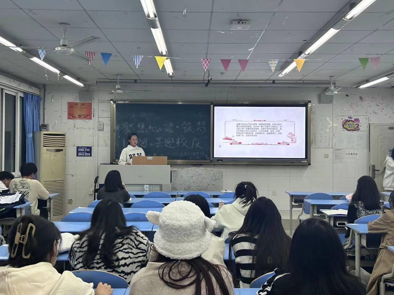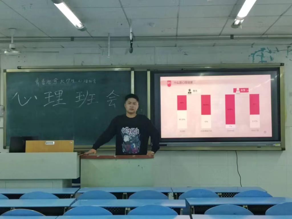 了解同学们对适应校园生活和同学所产生的压力,同时向同学们普及心理知识以更好了解自我,我班于10.24在致能楼405教室开展了《青春治愈》心理班会活动,首先向同学们讲述了PPT,普及了有关心理健康的知识,其次给同学们播放了视频《上头了,前任》,直观的让同学们了解到了情感表现。本次活动圆满结束,也感谢各位同学的积极参与。