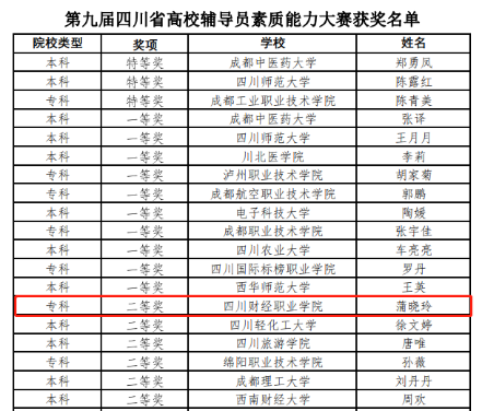 2.我校金融学院专职辅导员蒲晓玲荣获第九届四川省高校辅导员素质能力大赛二等奖