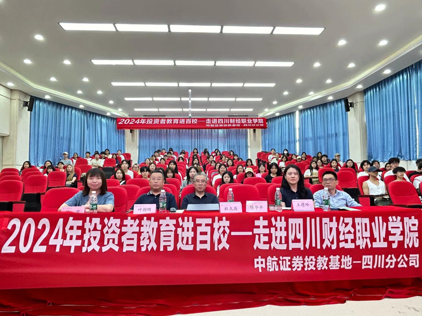 为提高大学生对非法证券的防范意识以及大学生对非法证券行为的鉴别能力,6月5日上午,金融学院联合中航证券四川分公司于B213教室开展了“金融知识进校园”主题投教活动。本次活动到场嘉宾有金融学院党总支书记、院长叶剑明,中航证券四川分公司副总经理杜久高,中航证券四川分公司合规总监王建玲,中航证券四川分公司 财务主管陈华平,金融学院团总支书记徐言 。