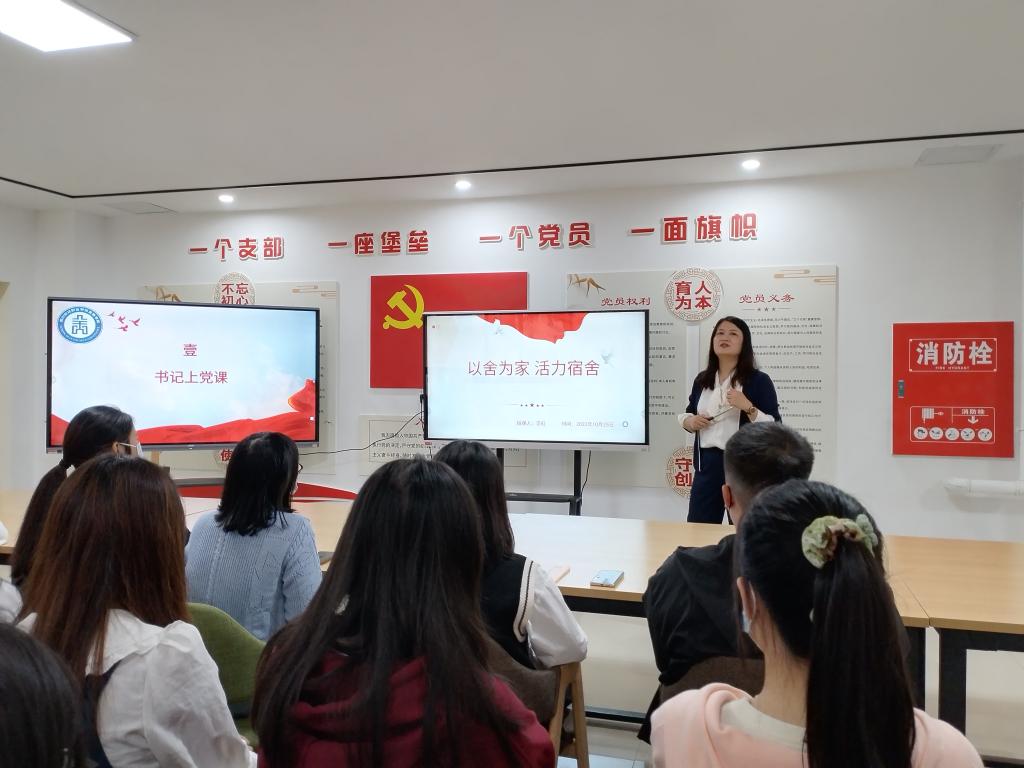 为推进党建工作纵深发展,学习党的二十大会议精神,进一步加强宿舍管理,10月25日下午,金融学院在“一站式”书香社区学生服务中心开展“公寓建设齐动员,拥抱美好新生活”的主题活动,旨在让党建文化走进学生的日常生活,营造安全舒适的生活环境,创建积极向上的文化氛围。参加本次活动的有金融学院党总支副书记李虹、金融学院专职辅导员蒲晓玲、22级室长、21级优秀室长代表。