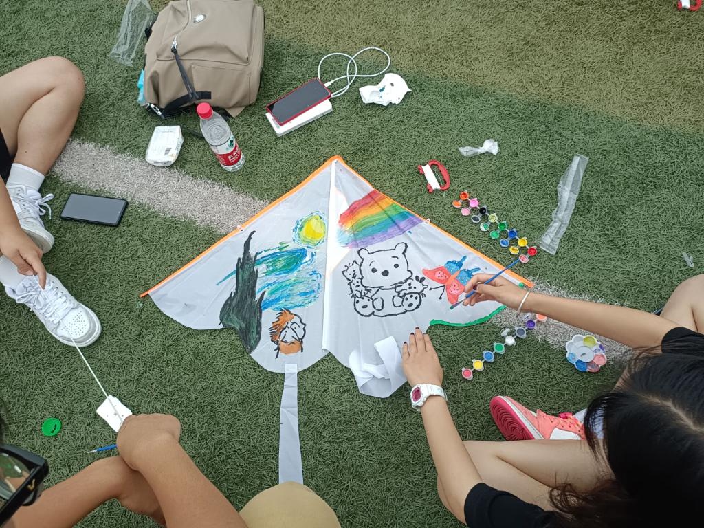 5月24日中午,金融学院开展了“追风少年,向未来”—创意风筝制作大赛,各组小组成员之间相互配合,创作出具有各组特色的优秀作品,同学们纷纷拿着自己小组绘制的风筝,迎着风的方向,放飞手中的风筝。活动进⾏时,操场上处处弥漫着笑声。“小白菜”们在放飞风筝的同时寻回了童真的快乐。