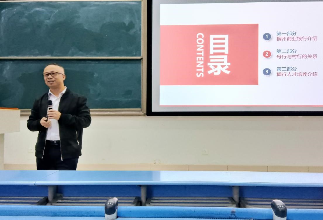 宣讲中,叶志亮老师首先简单介绍浙江稠州商业银行的发展历程及企业文化。着重强调了企业对人才的重视和培养,同时表示针对实习生培训制定了一套合理的培训方案,为企业预备一批高质量新职员。随后,洛带支行行长助理王琴分享了她从我院毕业实习到入岗的经历。