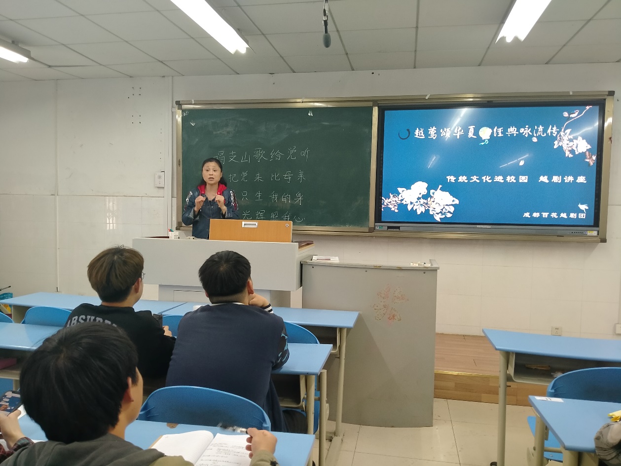 为了在大学生群体中传承中华优秀传统文化,提升大学生素质,传承弘扬戏曲文化的精髓,培养大学生对戏曲的兴趣,活跃学院的戏曲文化氛围,金融学院于4月22日下午15:30在B101邀请到成都百花越剧团的两位老师对金融学院的同学们进行了“传统文化进校园,越剧讲座”。学院各班文娱委员和合唱队同学参与了本次讲座。