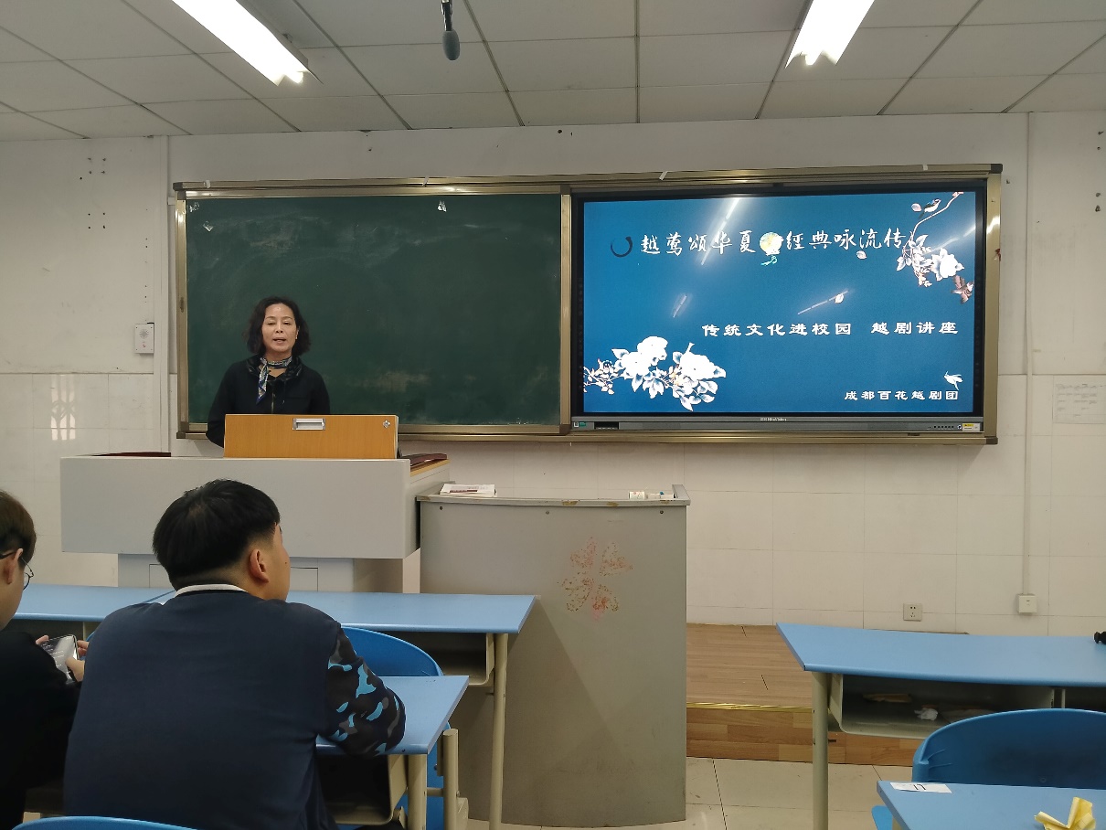 讲座开始,老师为我们讲解了中国戏曲的传统文化。中国的传统戏剧有一个独特的称谓——戏曲,它与希腊悲喜剧和印度梵剧,并称为世界三大古老的戏剧文化。中国戏曲有300多个剧种,运用歌舞形式表达剧情是中国戏曲的主要手段。戏曲种类包括京剧,地方戏曲,话剧。越剧就是地方戏曲的一种。