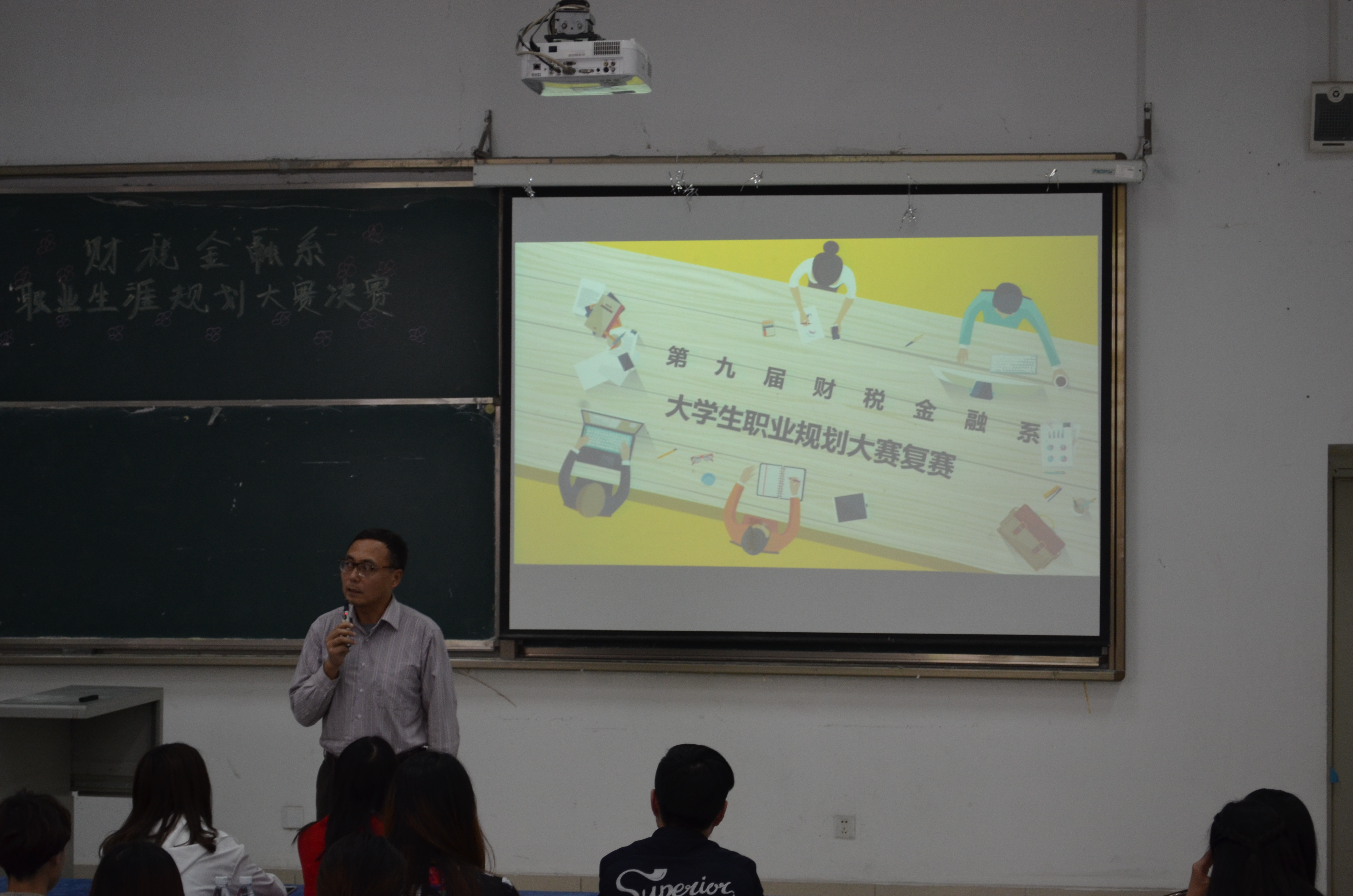 2016年4月7日,财税金融系于B110教室开展职业生涯规划大赛复赛,本次大赛的评委有财税金融系党总支书记祝刚同志,财税金融系学生党支部书记李虹同志,15级专职辅导员王娅丁老师,金融对口班辅导员李炎茹老师。