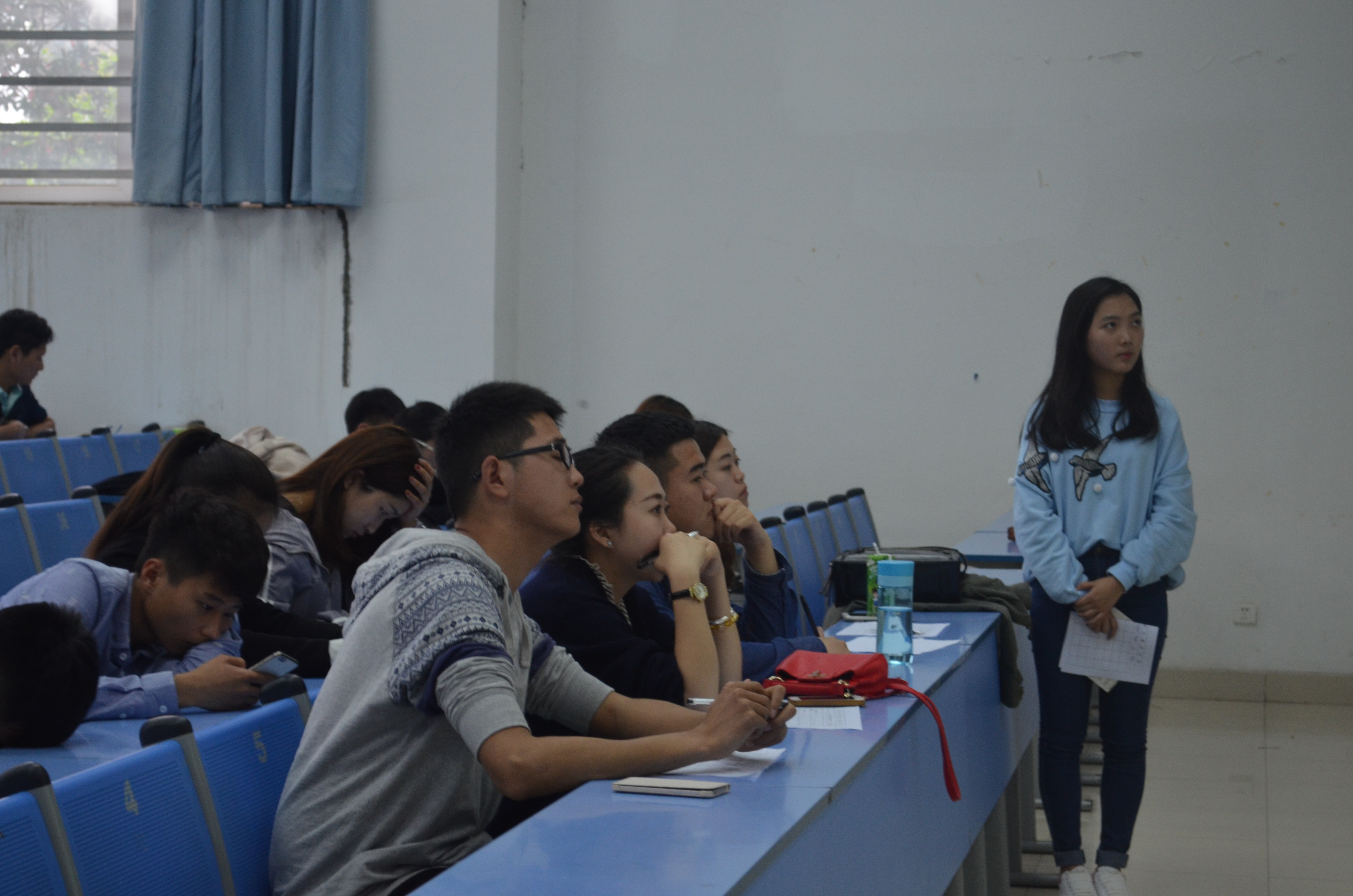 2016年4月5日下午两点财税金融系在b113举办了职业生涯规划PPT演讲初赛的比试。担任本次比赛的评委有第八届团总支学生会主席张凌熙,办公室主任蒙辰,学习部部长刘颖以及第八届职业生涯规划PPT演讲大赛的第一名获得者钟威。在主持人激情的开场下,本次大赛正式开始。