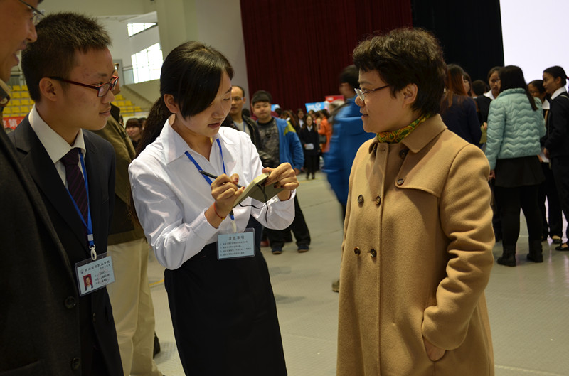 党委副书记学院院长黄吉秀同志前往招聘现场指导工作并亲切慰问参会的用人单位代表和工作人员。黄院长表示,毕业生双选会是学校和企业合作的一个优良平台,有利于企业吸纳优秀毕业生,推进企业的发展,也有利于毕业生顺利就业,实现人生价值,促进双赢。黄院长还与我系毕业生亲切交谈,询问毕业生就业准备情况,并表达了对2016届毕业生的期望,希望毕业生们利用双选会这个优良的平台,结合就业形势,充分利用自己的优势,找到心仪的工作,实现自身的价值,为社会做贡献为学校增光添彩。