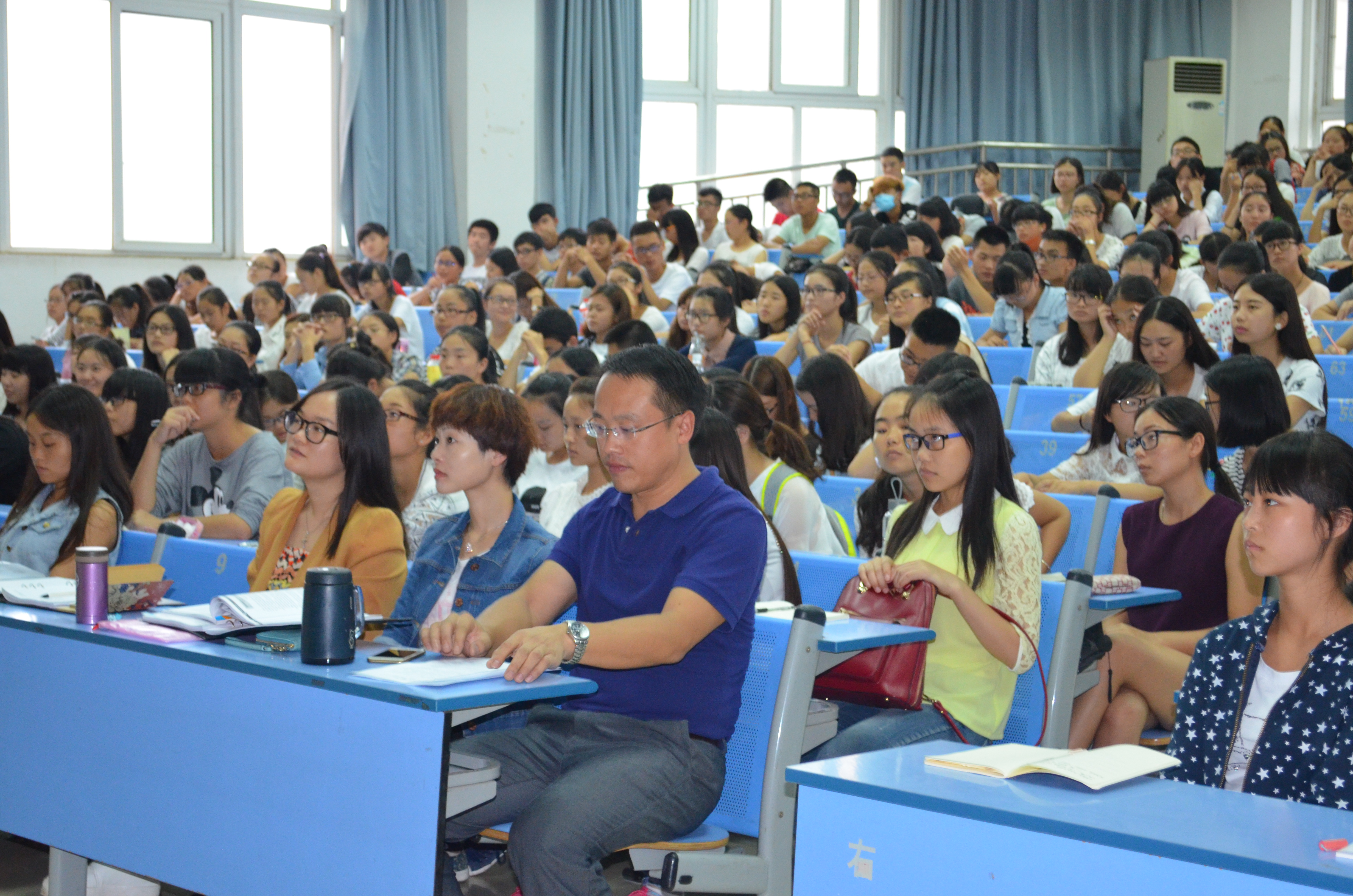 在短暂的休息后,系党总支书记祝刚就学生思想政治教育方面对15级新生进行入学教育。祝刚书记以“明德,阳光,感恩。”为切入点,带领同学们开始了入学教育的新篇章。祝刚书记讲到,明德是一种为人做事的态度,作为一个合格的大学生,不仅要有优异的成绩,同时也要注重自己德行的培养,作一个明德行,知事理的人。阳光也是作为一个学生所要具备的,阳光的心态,才能有积极向上的人生观,价值观,世界观。也要求要把这种阳光的态度,运用到以后的学习,生活,甚至是以后出身社会的工作中。作为一名大学生,应该常怀一颗感恩之心,感恩父母,感恩老师,感恩学校,感恩每一个帮助过自己的人。学会感恩,也是每个人的必修课。无论何时何地,处于哪一种身份地位,保持一颗感恩的心,才会让自己的人生路走的更加顺畅。