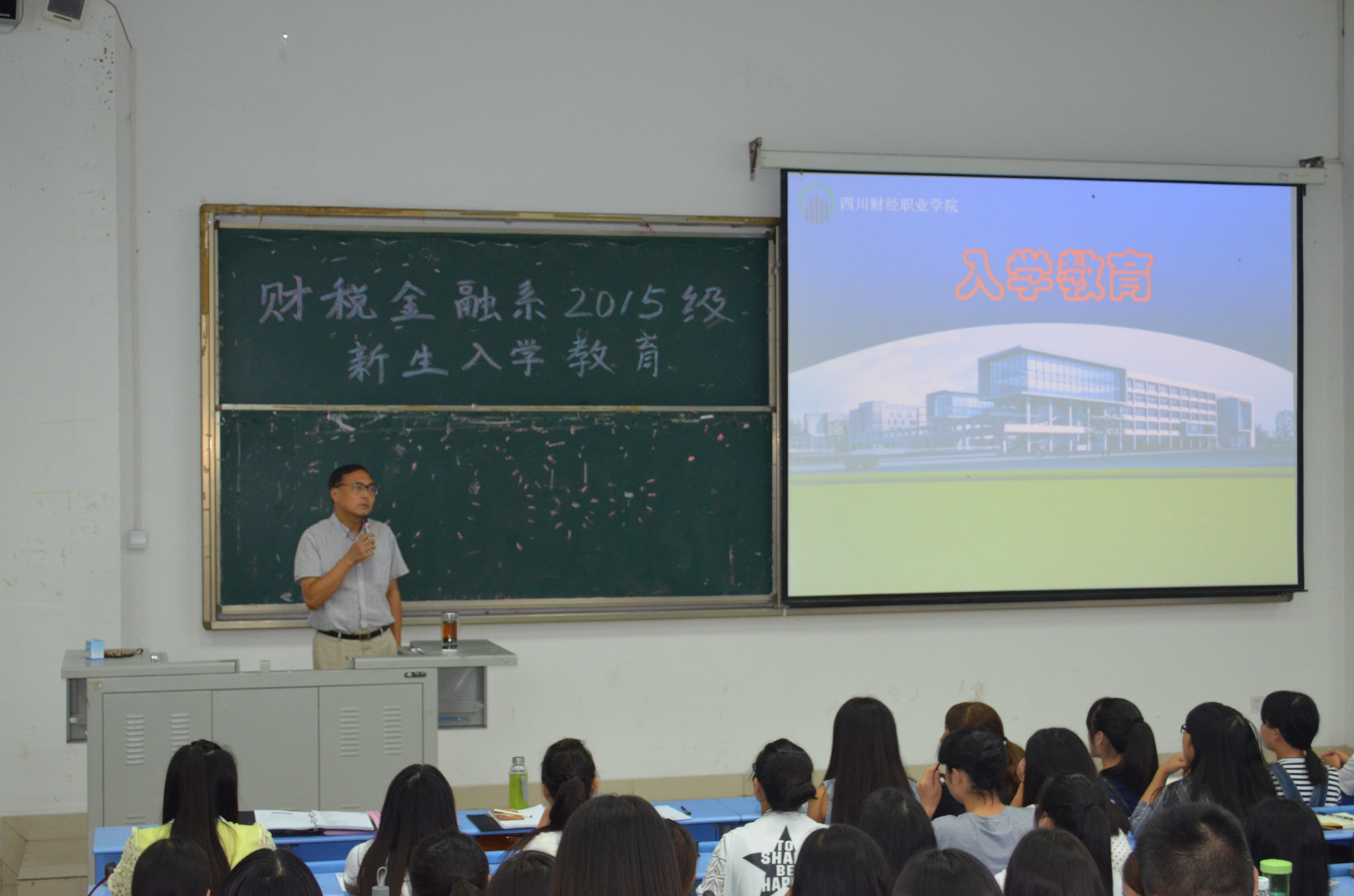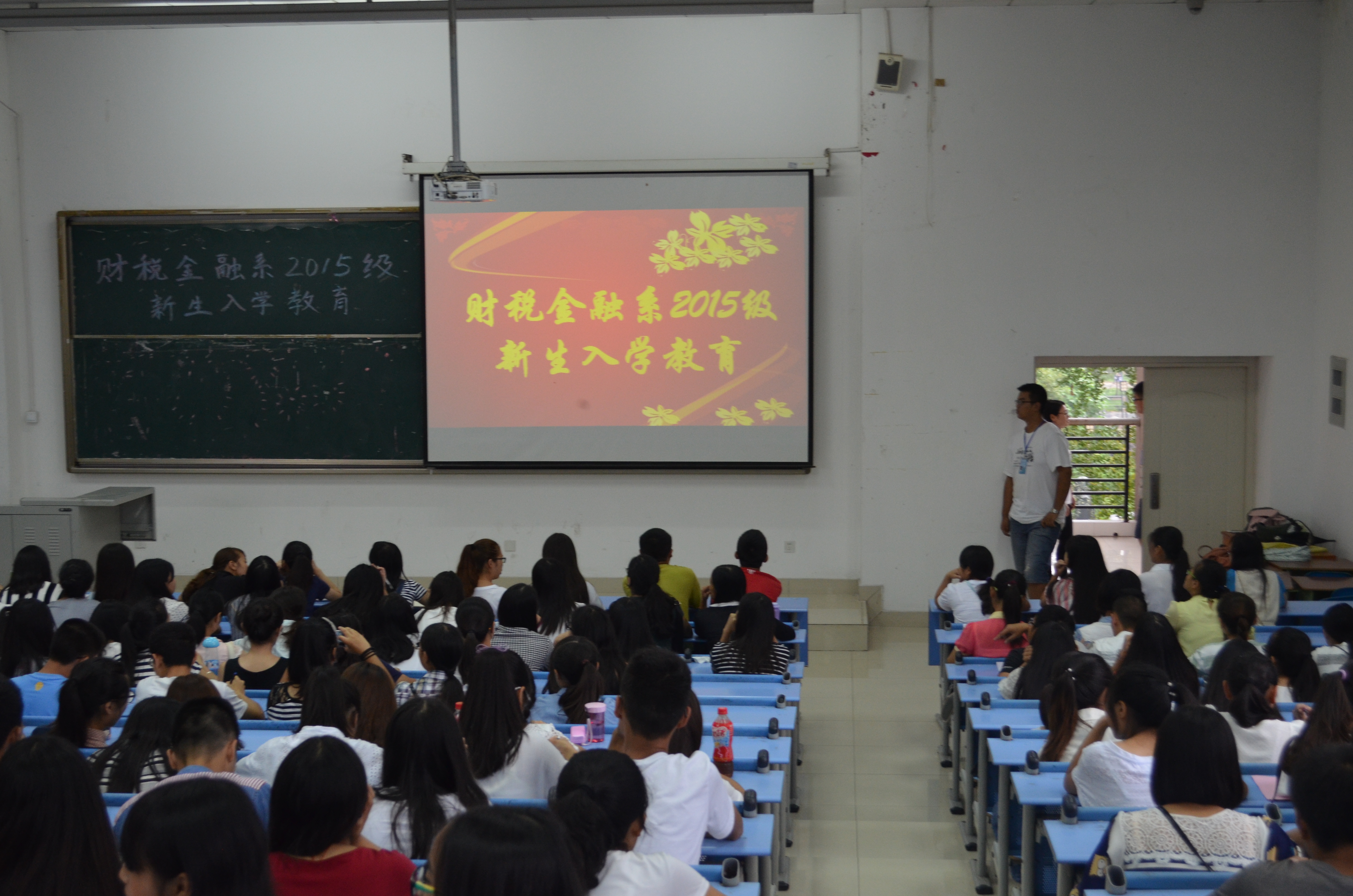 2015年9月8日下午2点,7790cnm必发集团财税金融系2015级新生入学教育在B212举行。财税金融系系主任钟用同志,财税金融系党总支书记祝刚同志,财税金融系团总支书记李虹同志,财税金融系教研室主任兰艳红同志,王超同志,李琳同志,2015级辅导员以及财税金融系2015级全体新生参加了此次新生入学教育。